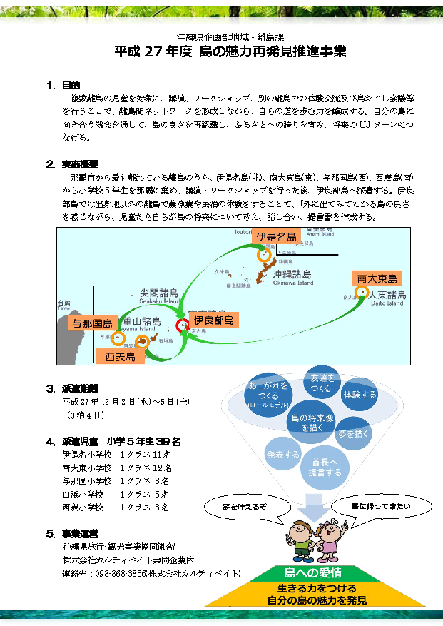 今年度から始まった沖縄県地域・離島課の「島の魅力再発見推進事業」