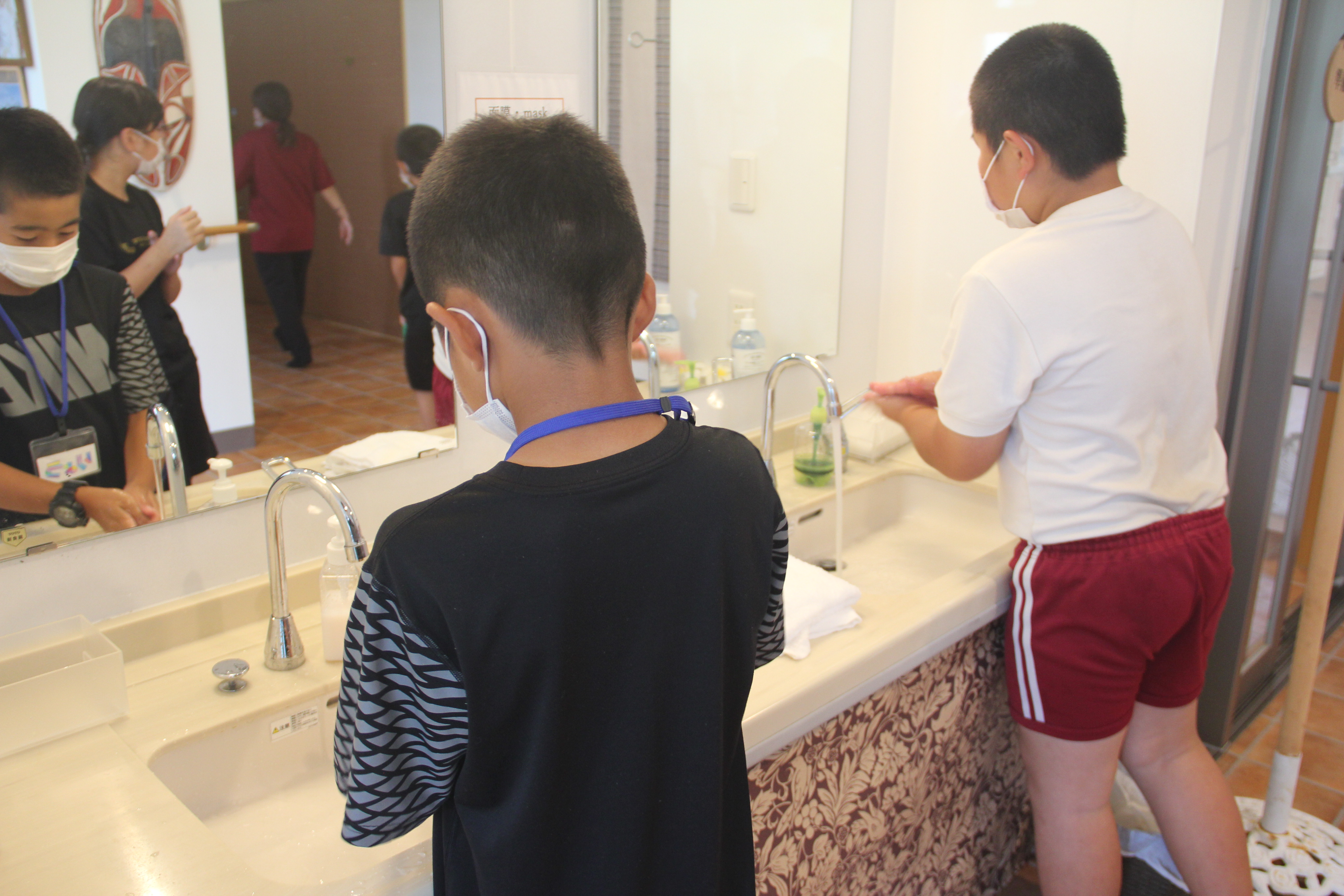 沖縄離島体験交流促進事業、宿泊先ではマスクはもちろん手洗いも徹底しています。