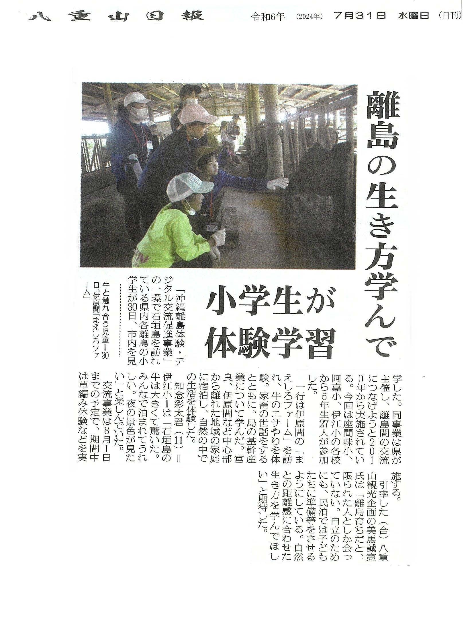 2024年(令和6年)7月31日 八重山日報に掲載されました