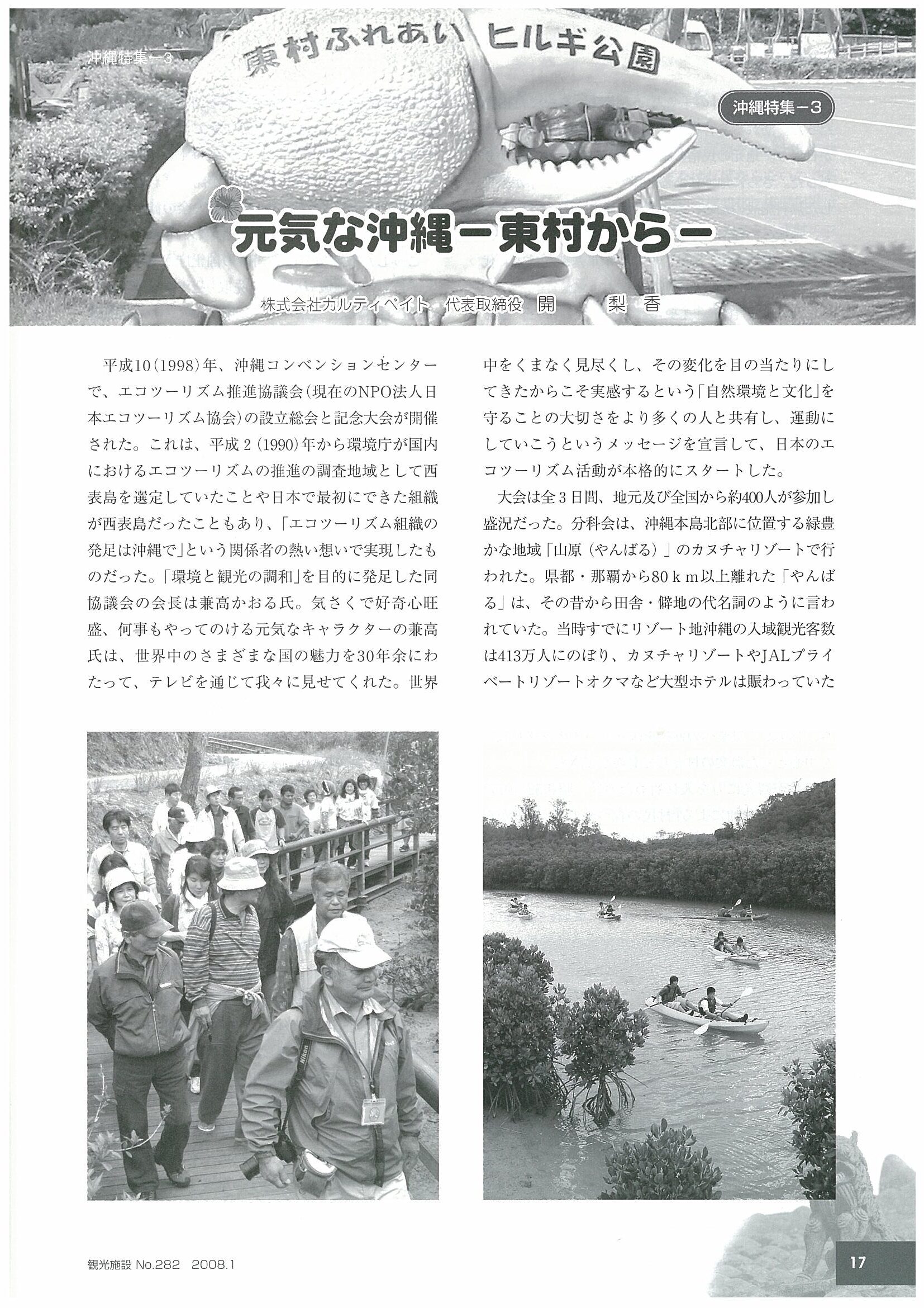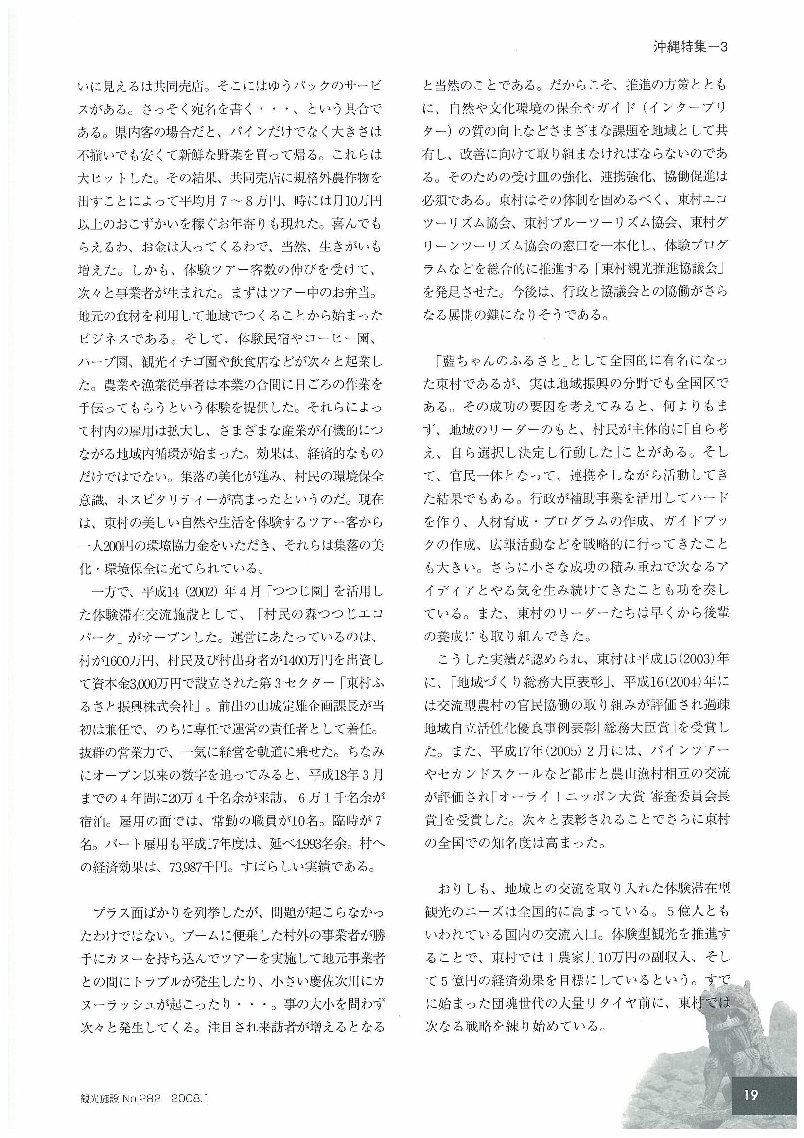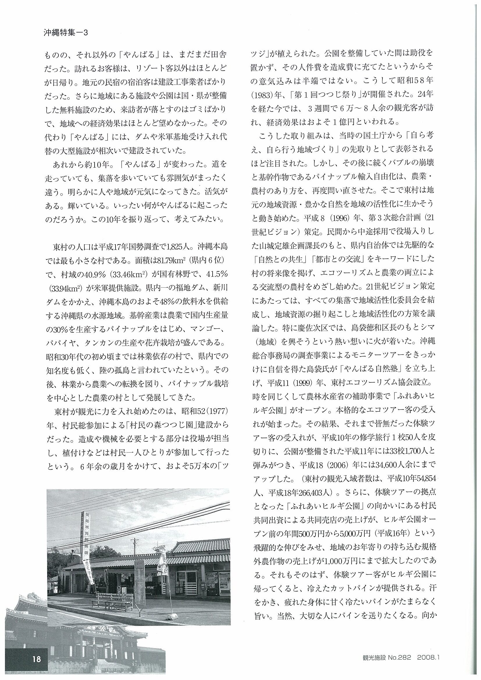 2008年社団法人国際観光施設協会『観光施設』に東村のエコツーリズム紹介文を寄稿しました。