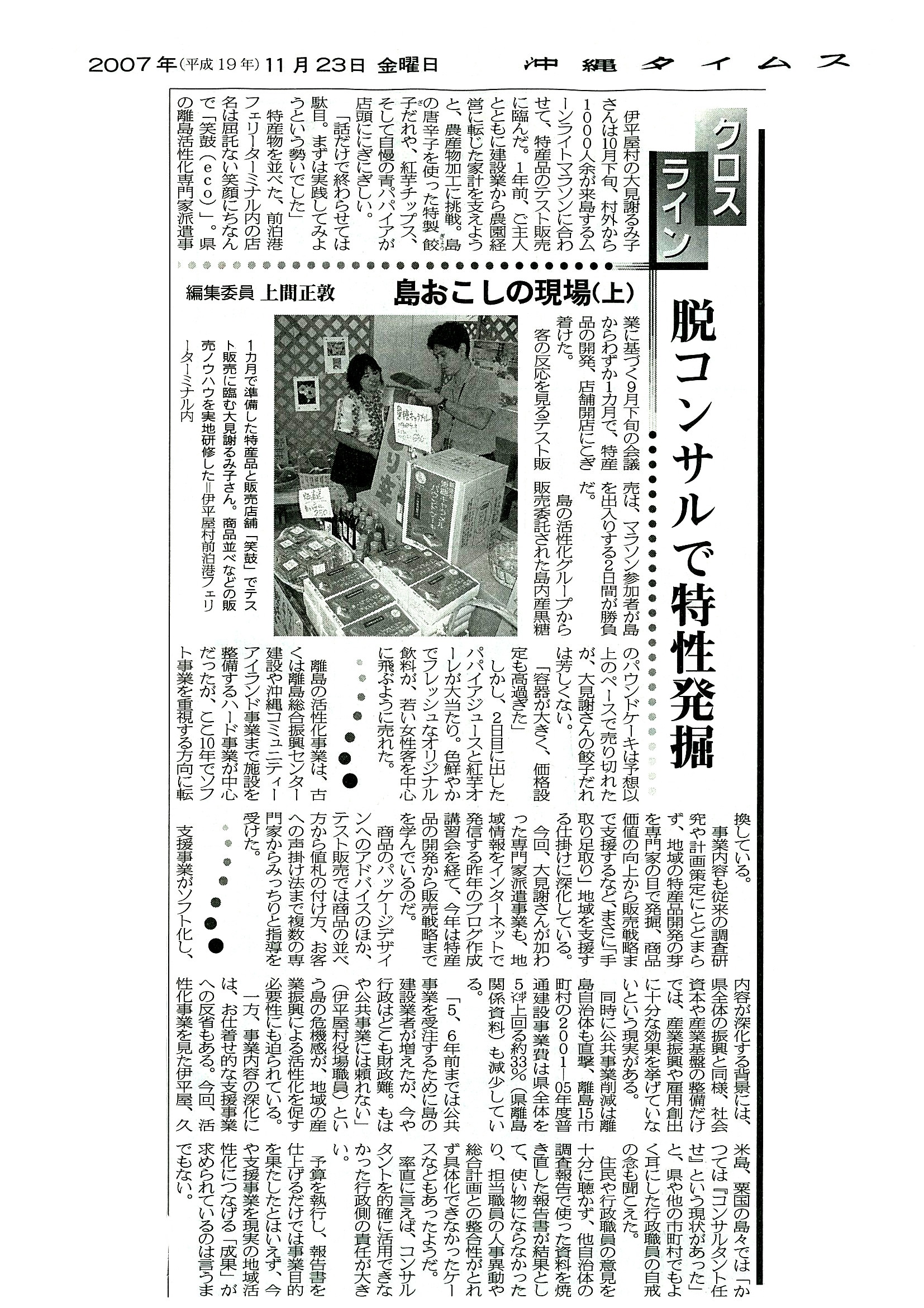 沖縄タイムス(2007年11月23日) 「脱コンサルで特性発掘」