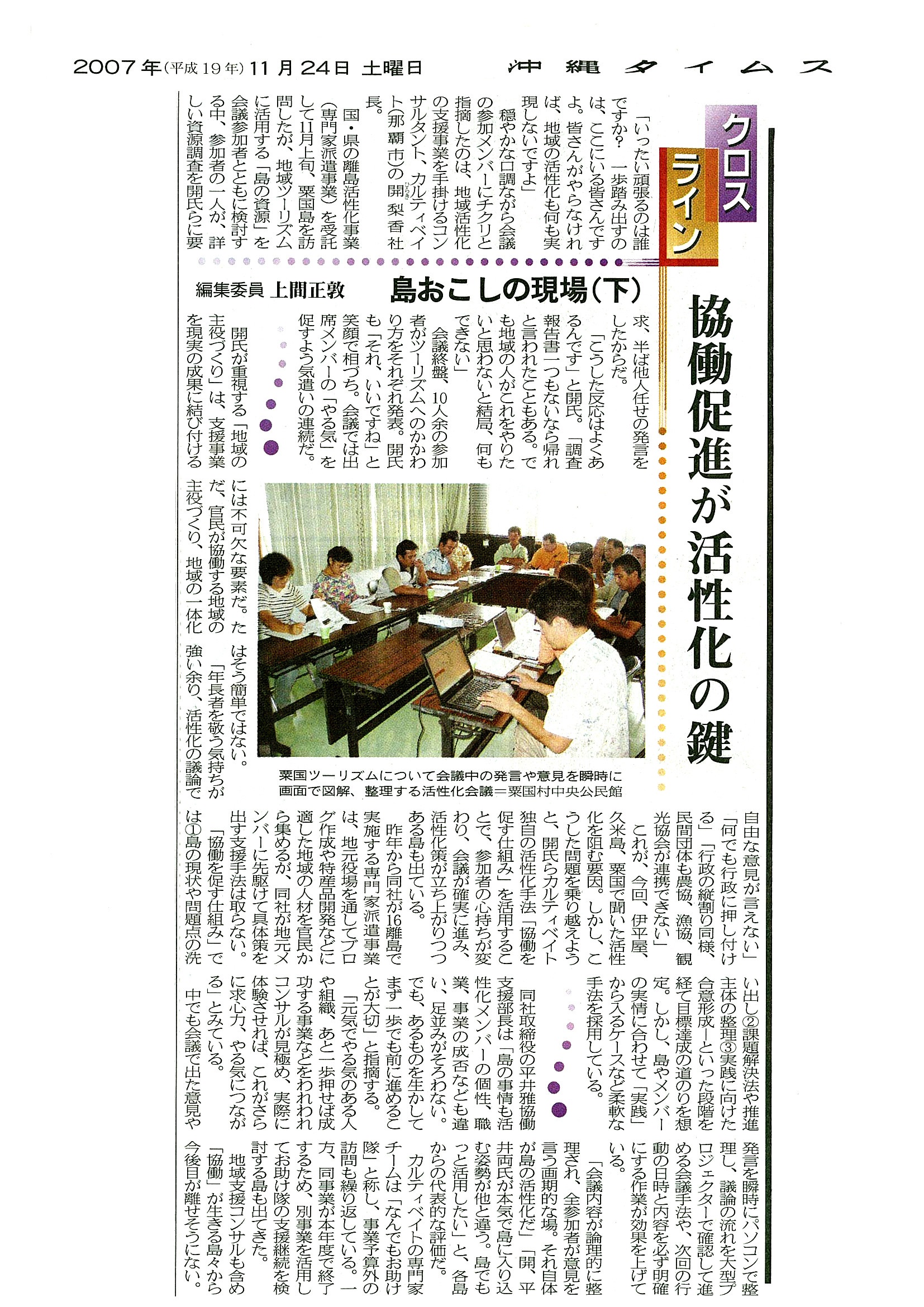 沖縄タイムス(2007年11月24日) 「協働促進が活性化の鍵」