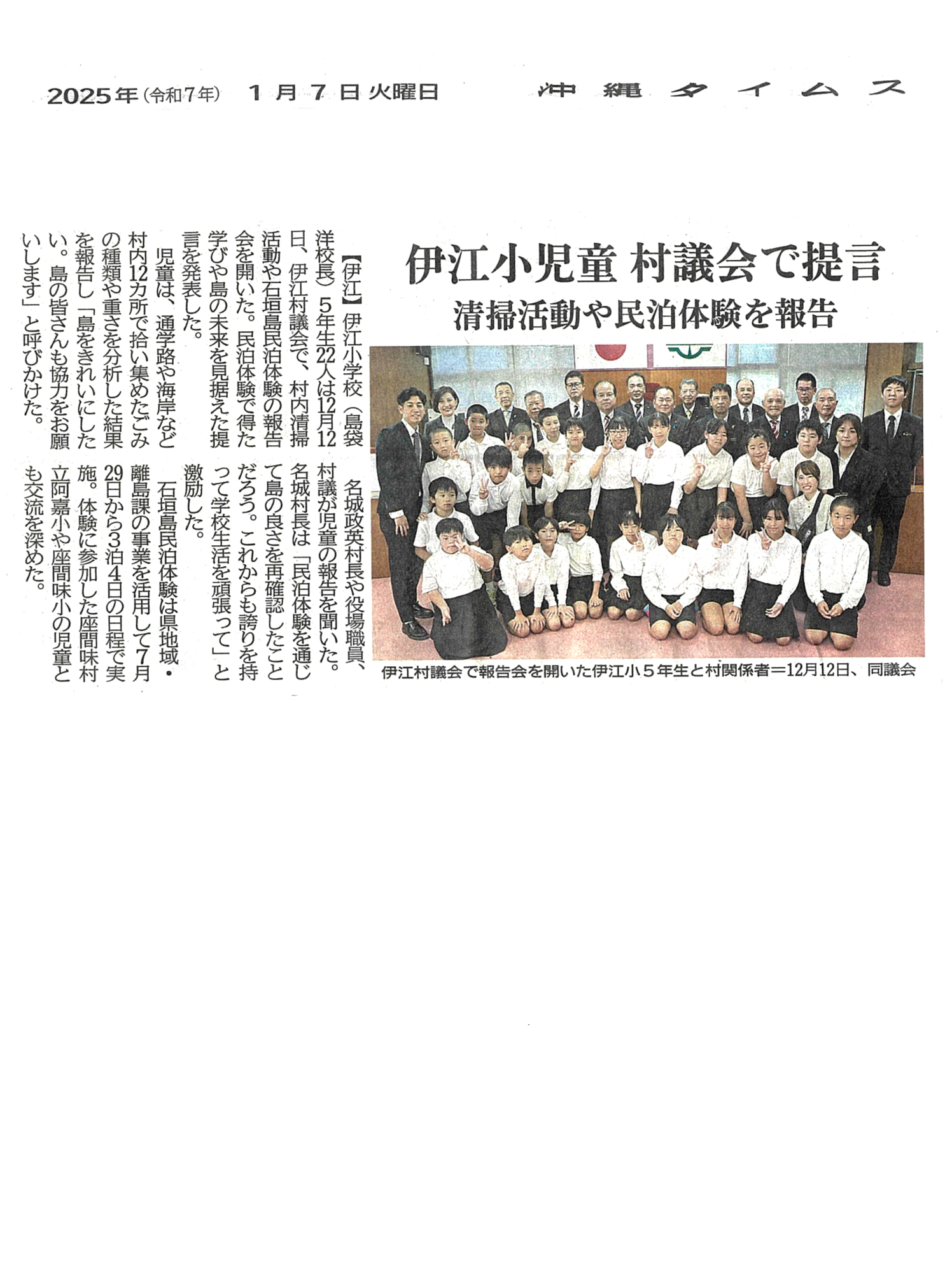 沖縄タイムス 沖縄離島体験・デジタル交流促進事業 伊江島「伊江小児童 村議会で提言」
