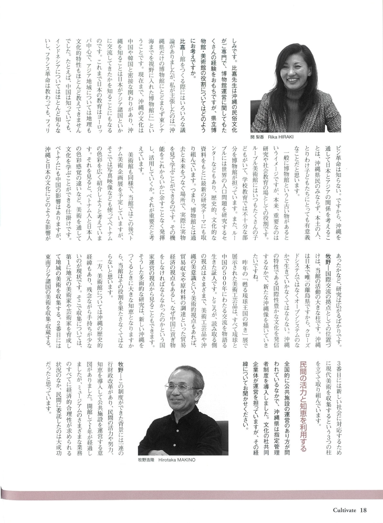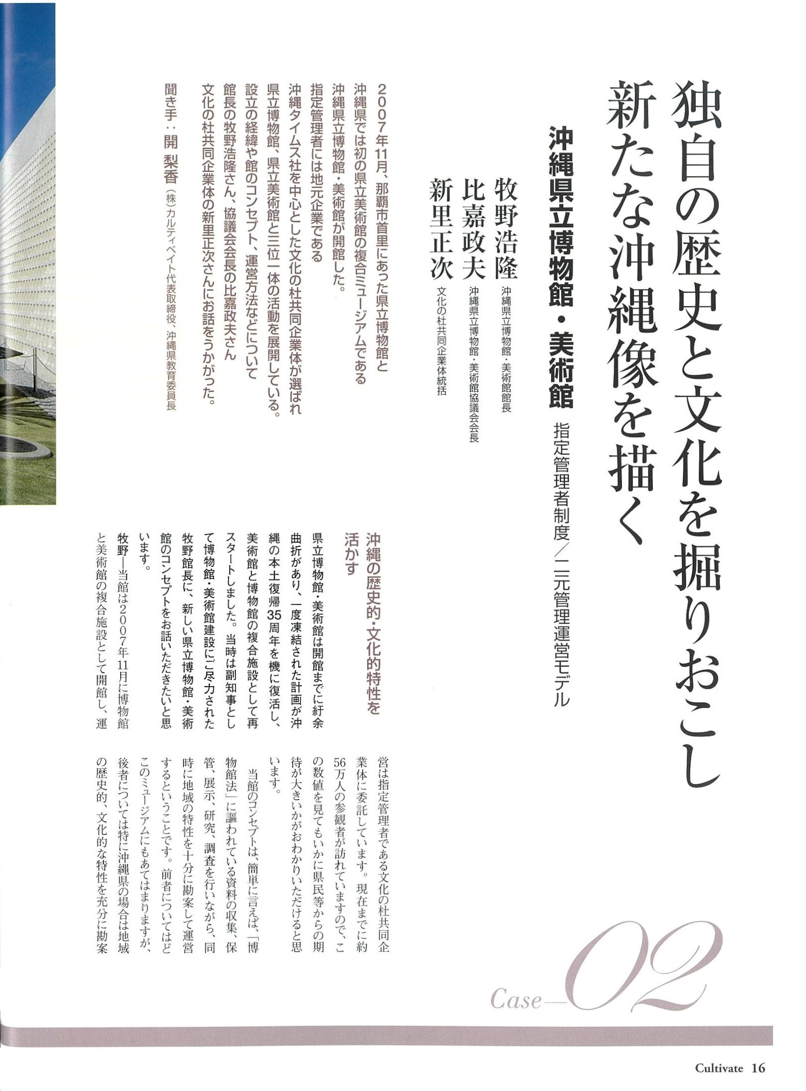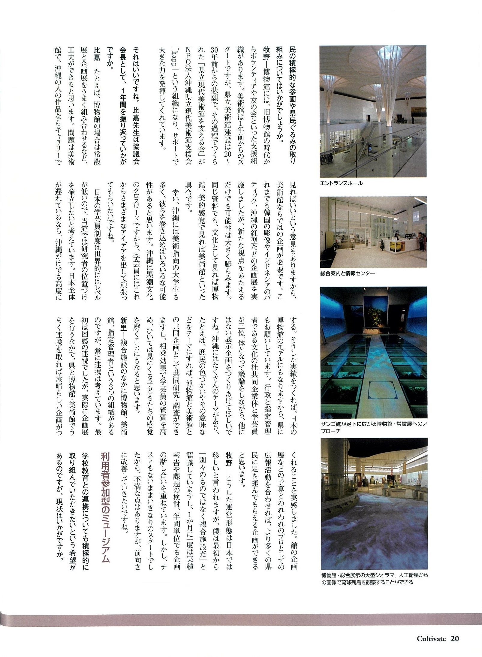 2009.02.01 『カルチベイト』「独自の歴史と文化を掘りおこし新たな沖縄像を描く」 2009年冬号『カルチベイト』に沖縄県立博物館・美術館特集(聞き手)「独自の歴史と文化を掘りおこし新たな沖縄像を描く」が掲載されました。 media_20090201