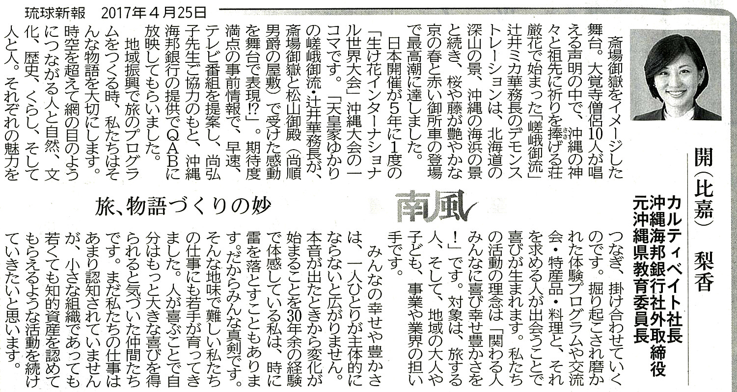 2017年4月25日 「南風」9回目の開のコラムが琉球新報に掲載されました。
