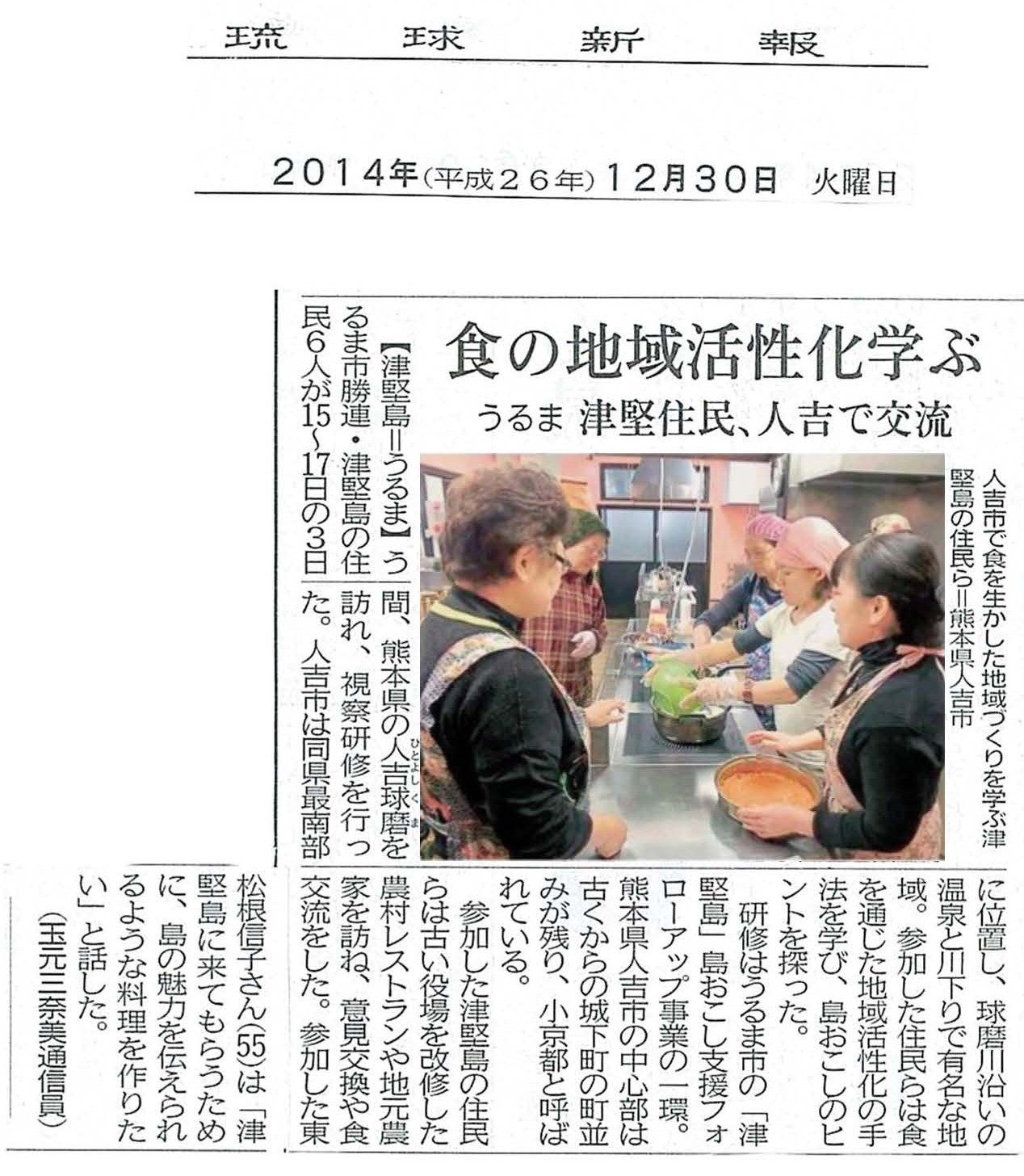 12/30【津堅島】琉球新報「食の地域活性化学ぶ」