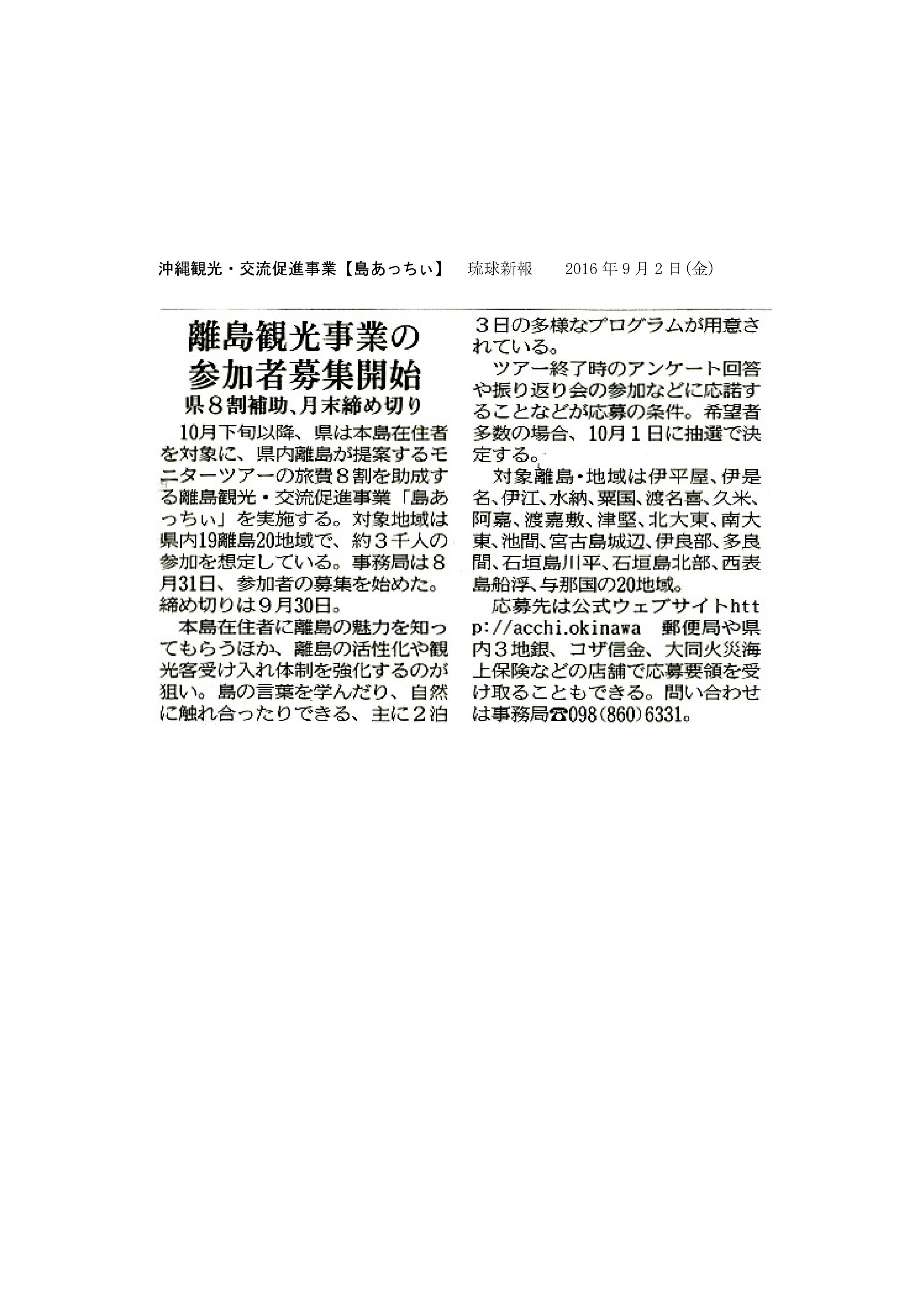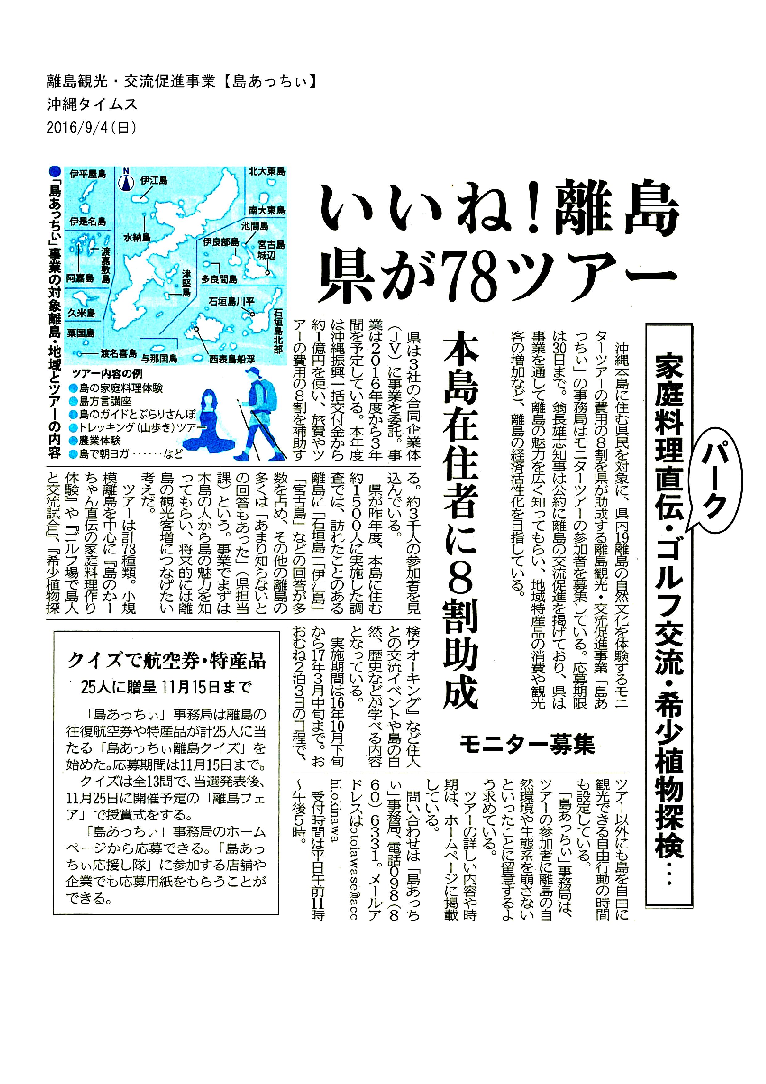 20160902【島あっちぃ】募集開始[琉球新報]  20160904【島あっちぃ】募集開始[沖縄タイムス]