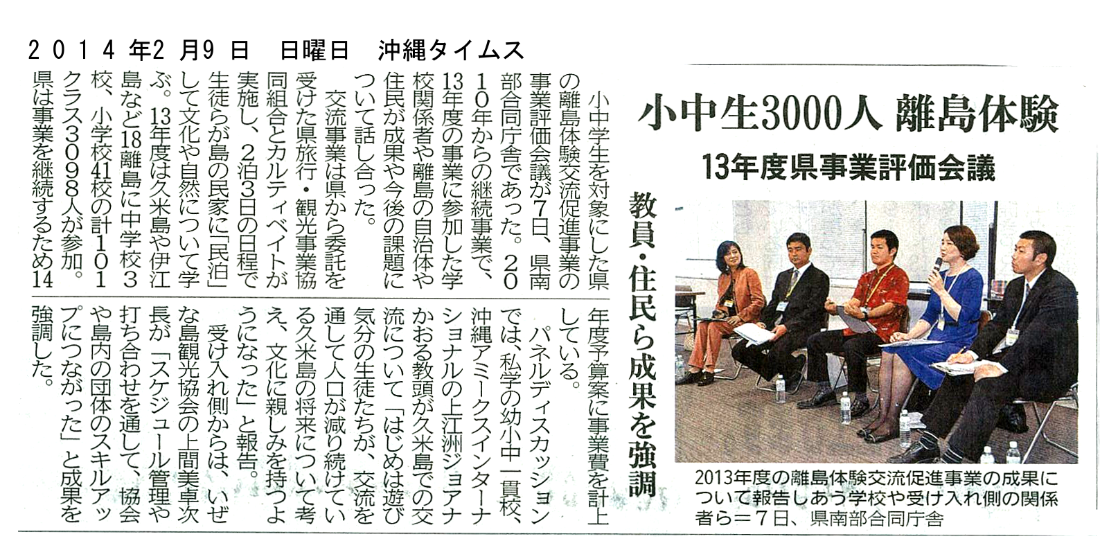小中生3000人 離島体験 13年度県事業評価会議